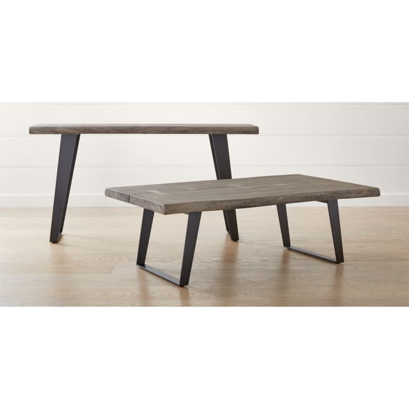 • Yukon 57" Rectangular Weathered Grey Live Edge Solid Wood and Metal Console Table