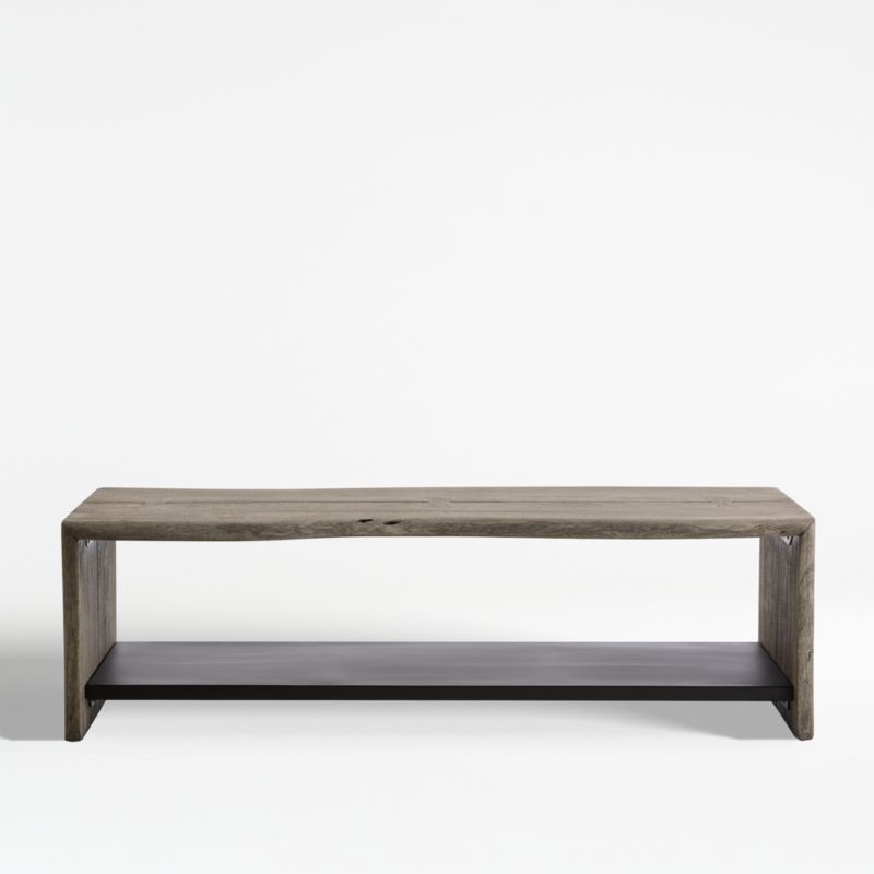 • View Yukon Weathered Grey Live Edge Solid Wood Storage Entryway Bench with Shelf - image 1 of 16