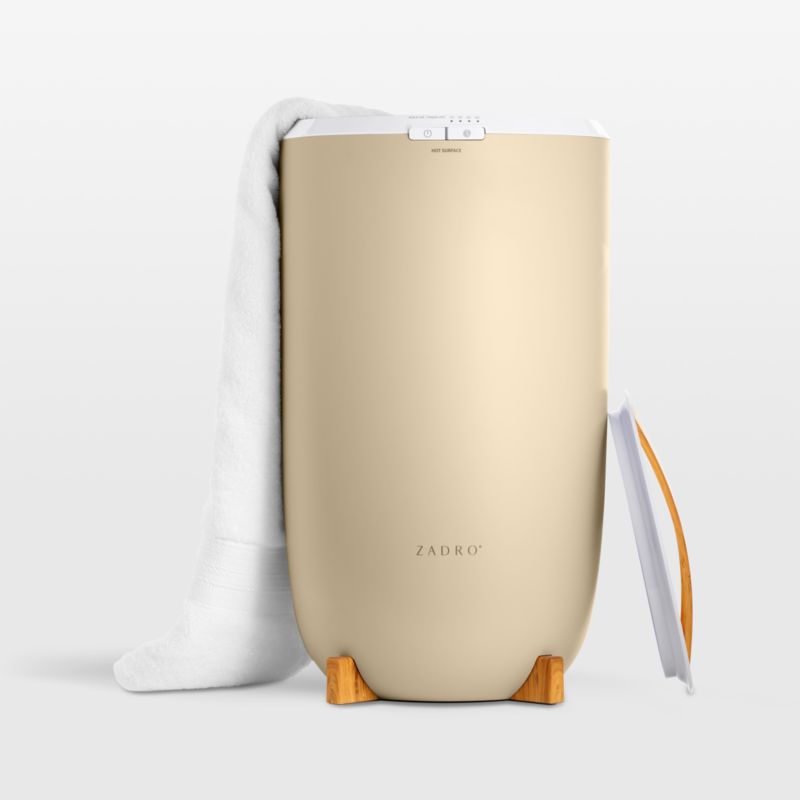 No longer a luxury reserved to spas, warmed towels are yours every day with this ingenious towel warmer. Choose from four timer settings up to 60 minutes to have your towel heated to the perfect temperature as you step out of the bath or shower. The towel warmer accommodates up to two 40"x70" bath towels, and you can also use it to warm up robes and throw blankets. For an extra-indulgent experience, infuse your towels with your favorite scents by adding a few drops of essential oil to the reservoir in the lid. Lightweight and freestanding, the bucket-style appliance has a small footprint and coordinates well with bath decor thanks to its creamy exterior and warm bamboo accents.
