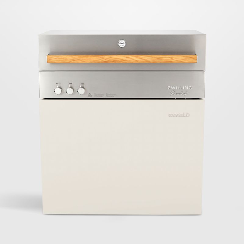 Featuring infrared technology, this innovative grill from Zwilling expands the possibilities of outdoor cooking. Made of high-quality stainless steel with expert engineering, the grill features burners that create individual cooking and heating zones to facilitate direct, indirect or a combination of both cooking methods. Designed to be used with the hood open or shut, the grill is constructed with a double wall for complete insulation that ensures it heats up quickly and keeps an even temperature. Easy to clean thanks to removable grates, burners and grease tray, the grill also graces outdoor spaces with its sleek, award-winning design featuring an ivory white finish.
